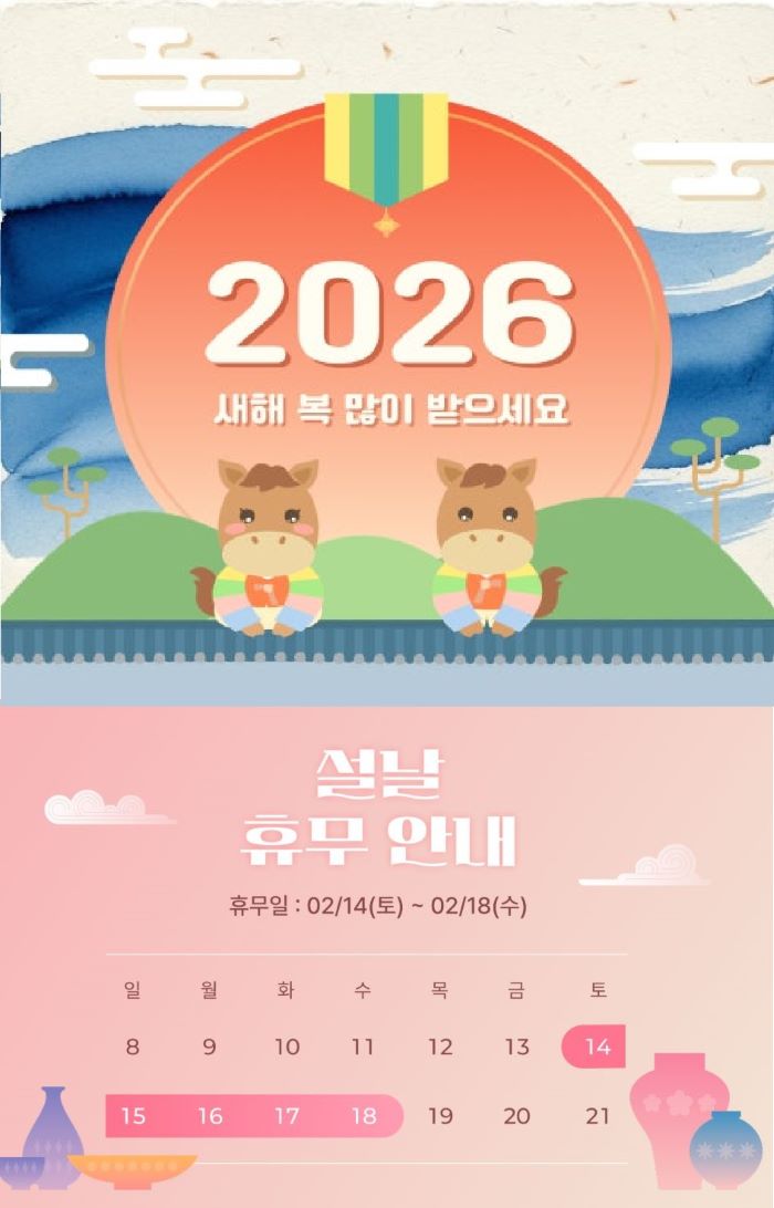 휴 무: 02/14(토) ~ 02/18(수)